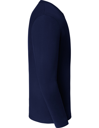 100% Ringspinn-Baumwolle | Classic fit | Single Jersey | Schulter-zu-Schulter-Nackenband | 1×1 Rippstrick-Kragen mit Absteppung | Schlauchware