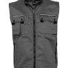 Unisex-Workwear-Bodywarmer | Sechs Taschen, inklusive einer Handytasche und einer Innentasche | Taschenklappen mit Reflektions-Streifen | Drei Stifttaschen | Integrierter, schwarzer Reißverschluss