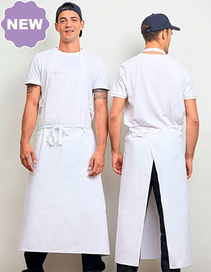 Extra lange, sehr strapazierfähige Chef-Latzschürze | Fixiertes Nackenband | Großes Taillenband – 88 cm | Canvas