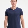 190 Jersey, 100% halbgekämmte, ringgesponnene Baumwolle | Nackenband | Ripp-Kragen | V-Ausschnitt | Kurzen Ärmel | Röhrenförmiger Schnitt | Abreißetikett
