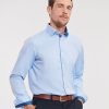 Russell Collection Men´s L/S Tailored Contrast Herringbone Shirt Z964 bedrucken & besticken