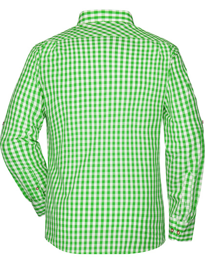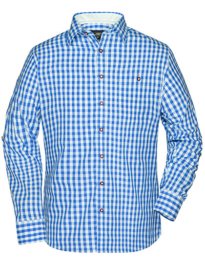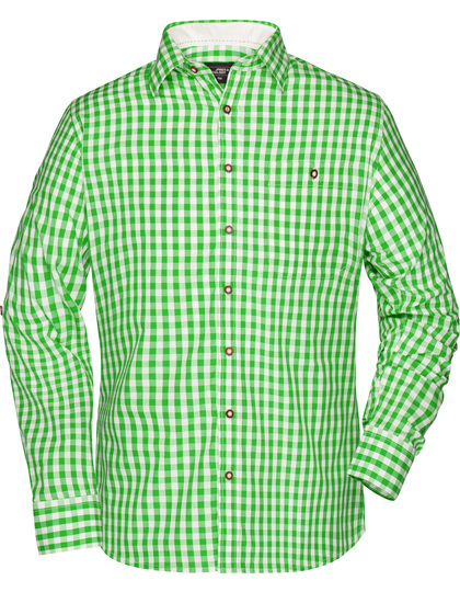Herren-Hemd im klassischen Trachtenlook | Hochwertige, bügelleichte Popeline-Qualität mit Easy-Care Finish | Ärmel zum Hochkrempeln mit Lasche und Knopf | Abgerundeter Saum | Trachtenknöpfe aus Horn-Imitat | Classic fit | Leicht taillliert | Brusttasche | Zwei Rückenfalten