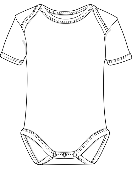 Kurzärmeliger Bodysuit | Envelope-Halsausschnitt | Weiche und elastische Interlock-Verarbeitung | Drei Qualitäts-Druckknöpfe | Unbedruckt waschbar bis 60 °C | Waschecht