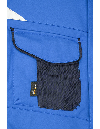 Robustes, strapazierfähiges Mischgewebe | Stehkragen innen mit weichem Fleece | Schulterbereich mit CORDURA® verstärkt | Durchgehend unterlegter Reißverschluss mit Windschutzblende | Innenliegende wärmende Armbündchen | Großzügige Belüftungsöffnungen im Rückenteil | Seitentaschen, Brusttasche und Innentasche mit Reißverschluss | Brusttasche mit Klappe, Handytasche innen | Reflexelemente (ohne Schutzfunktion/keine PSA) im Vorder- und Rückenteil | 60°C waschbar, trocknergeeignet